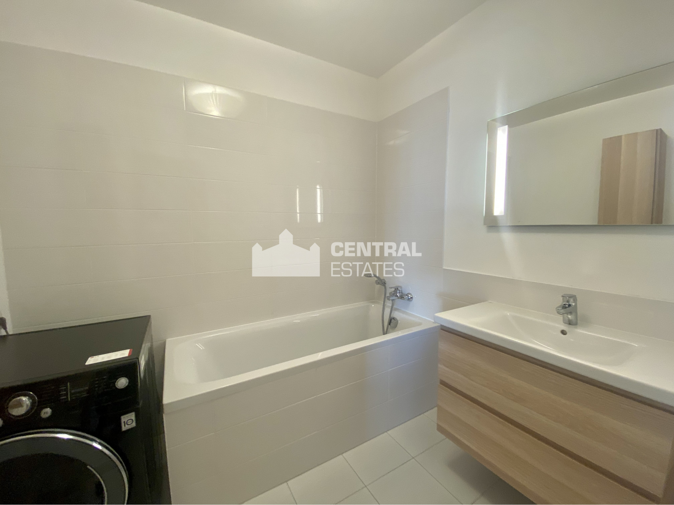 Byt pozostáva zo vstupnej haly, 3 samostatných spální, z priestrannej obývacej izby prepojenej s plne vybavenou kuchyňou a jedálenskou časťou, dvoch kúpeľní s vaňou, sprchovacím kútom a samostatnej toalety. k bytu prislúcha terasa (7m2) s panoramatickým výhľadom na Dunaj a na dominanty Bratislavy. K bytu prislúcha parkovacie státe pre jedno auto v podzemnej garáži.