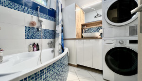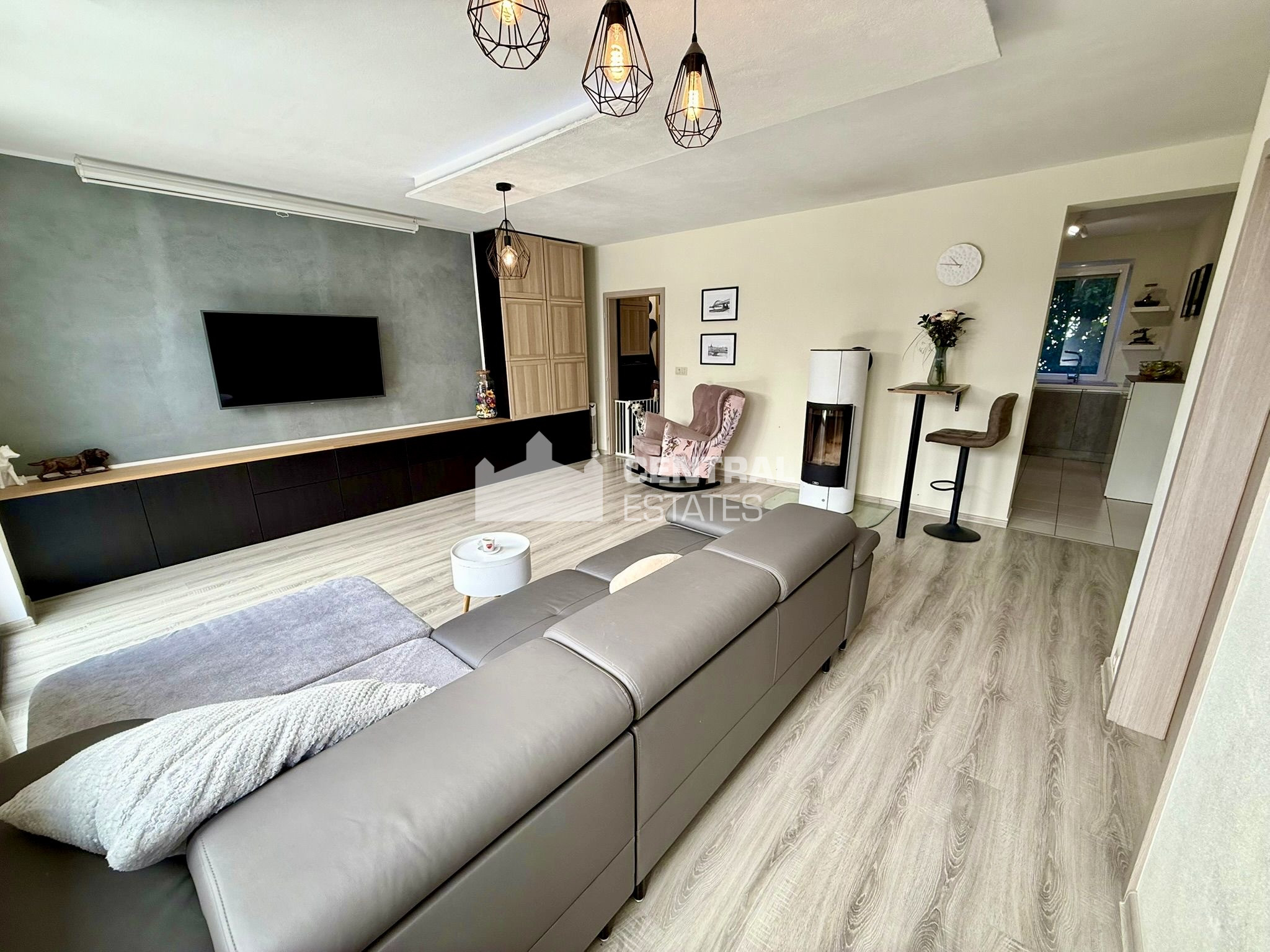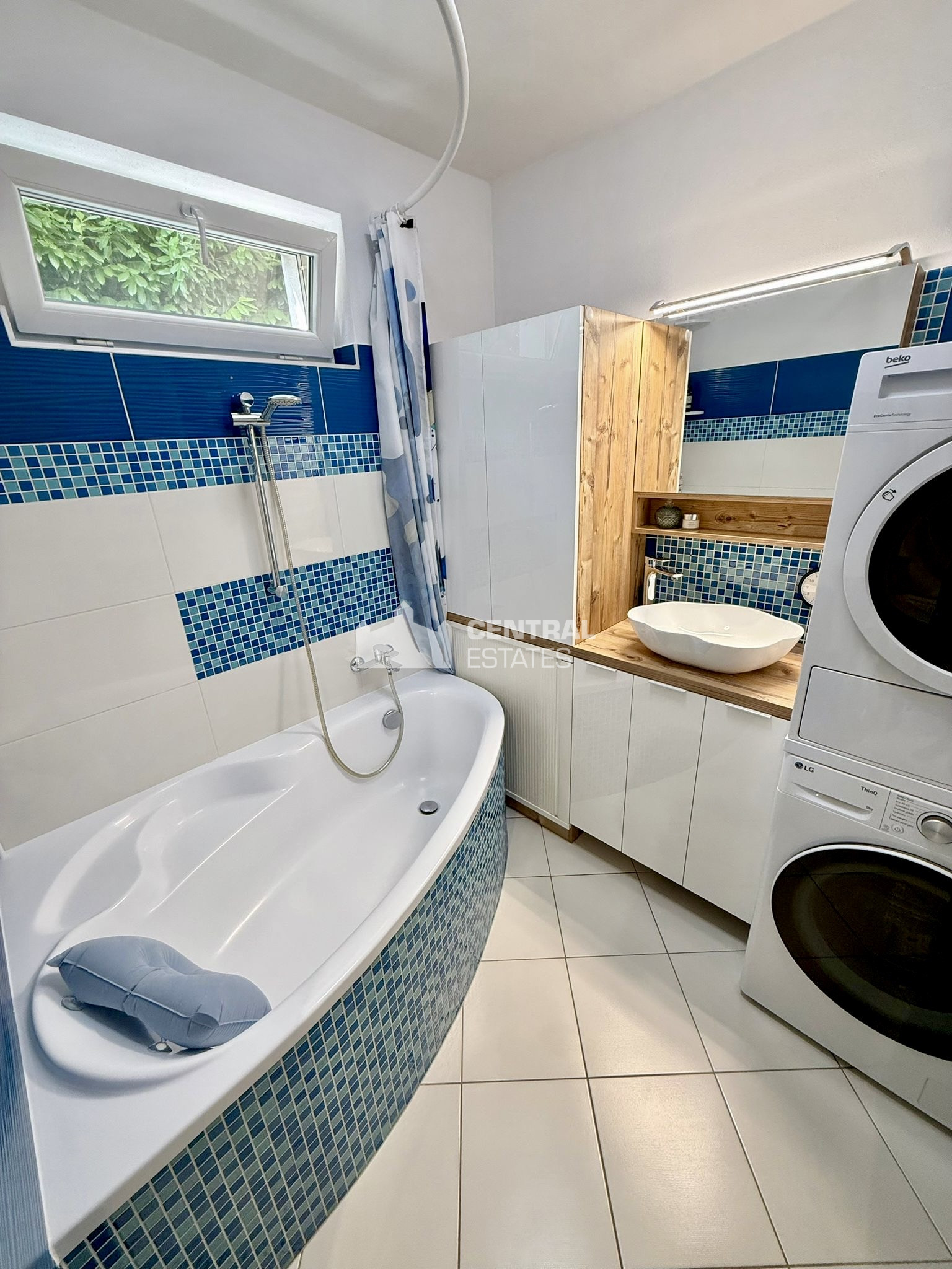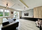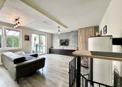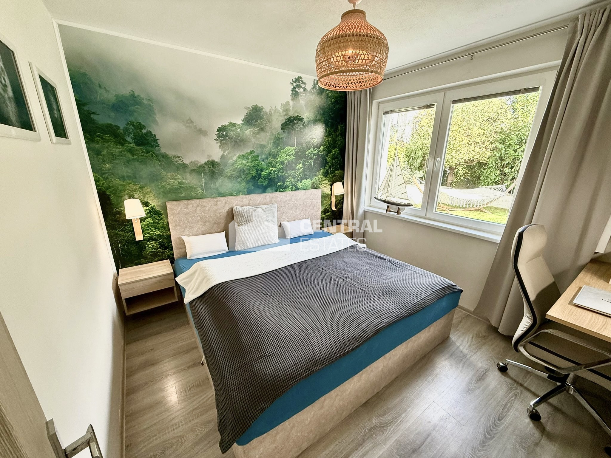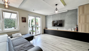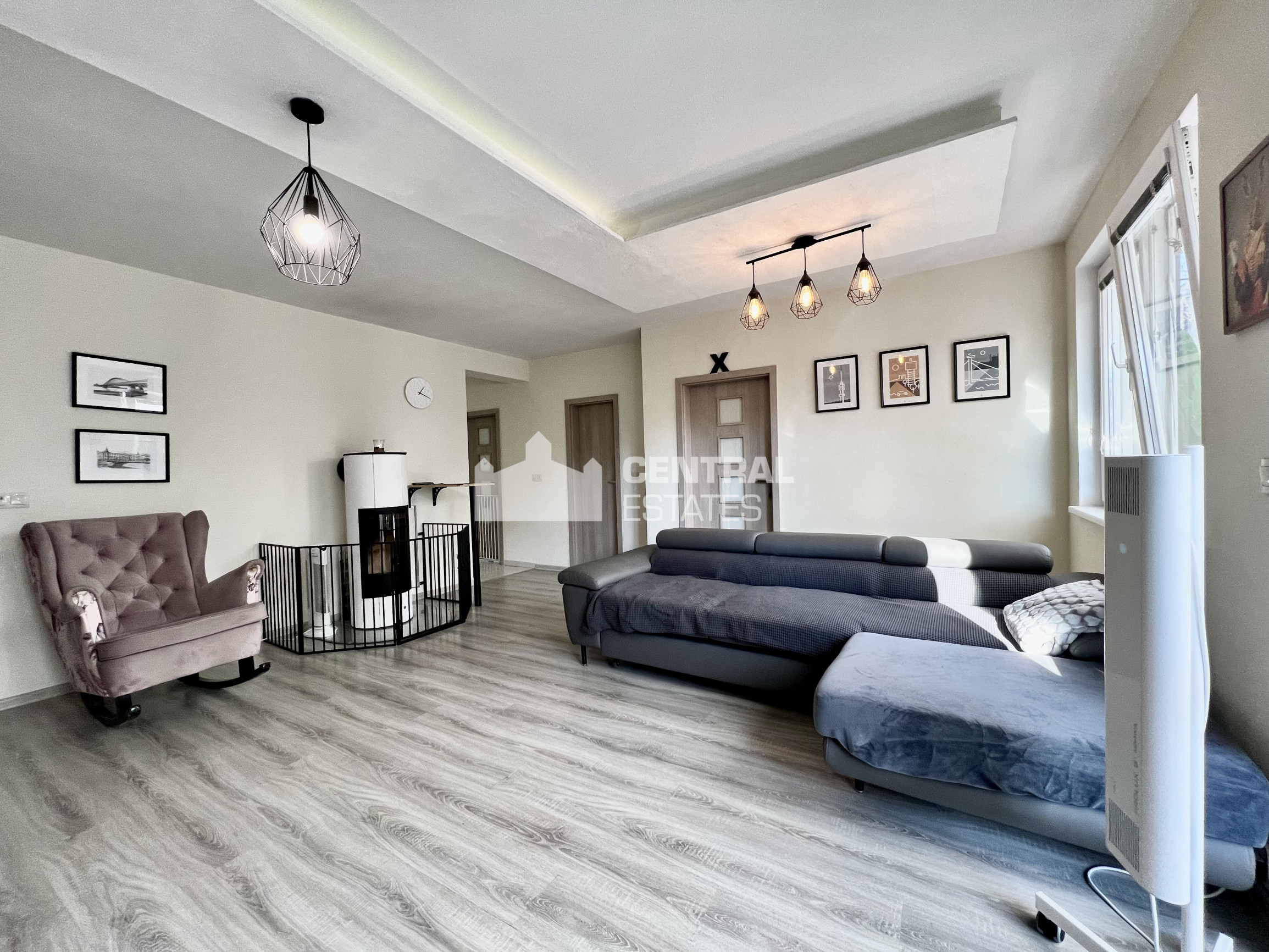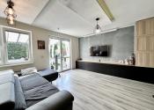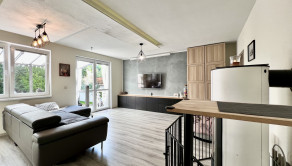 Byt pozostáva zo vstupnej predsiene s úložným priestorom, vzdušnej obývacej izby s krbom (8 kW), plne vybavenej kuchyne, dvoch samostatných spální pre pokoj a súkromie, samostatného šatníka, kúpeľne s vaňou, práčkou a sušičkou a samostatnej toalety. Moderná kuchyňa je vybavená všetkými vstavanými spotrebičmi. V byte je podlahové kúrenie s elektrickým kotlom + krb, bojler na teplú vodu 120 l na fotovoltaický systém, optický internet, smart osvetlenie Philips Hue ovládateľné z mobilu. Mesačné náklady sú nízke cca 120 Eur.