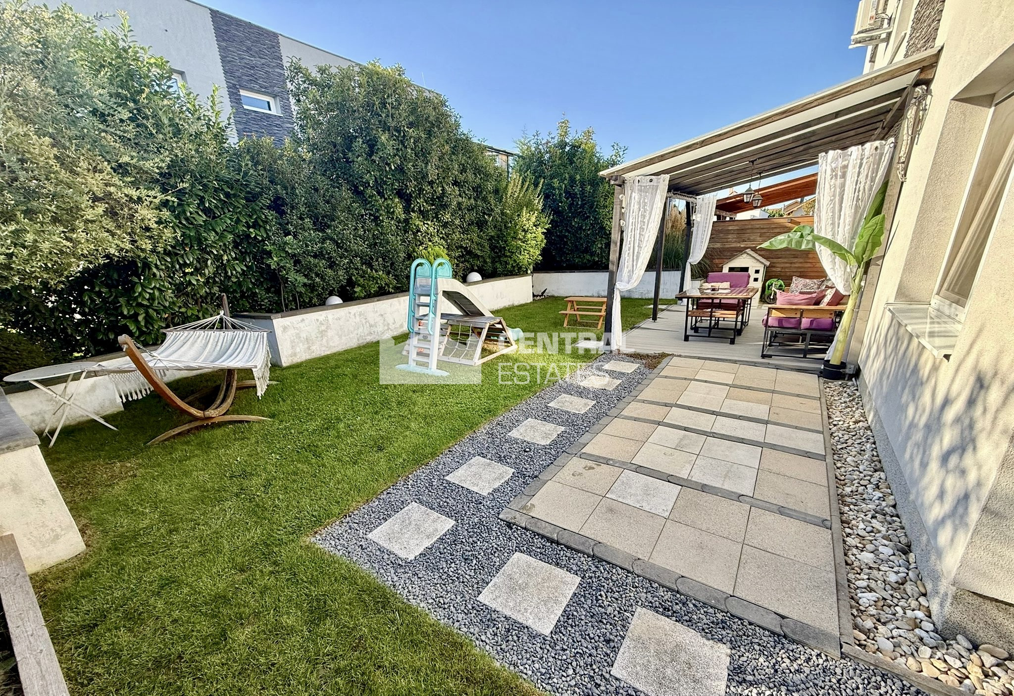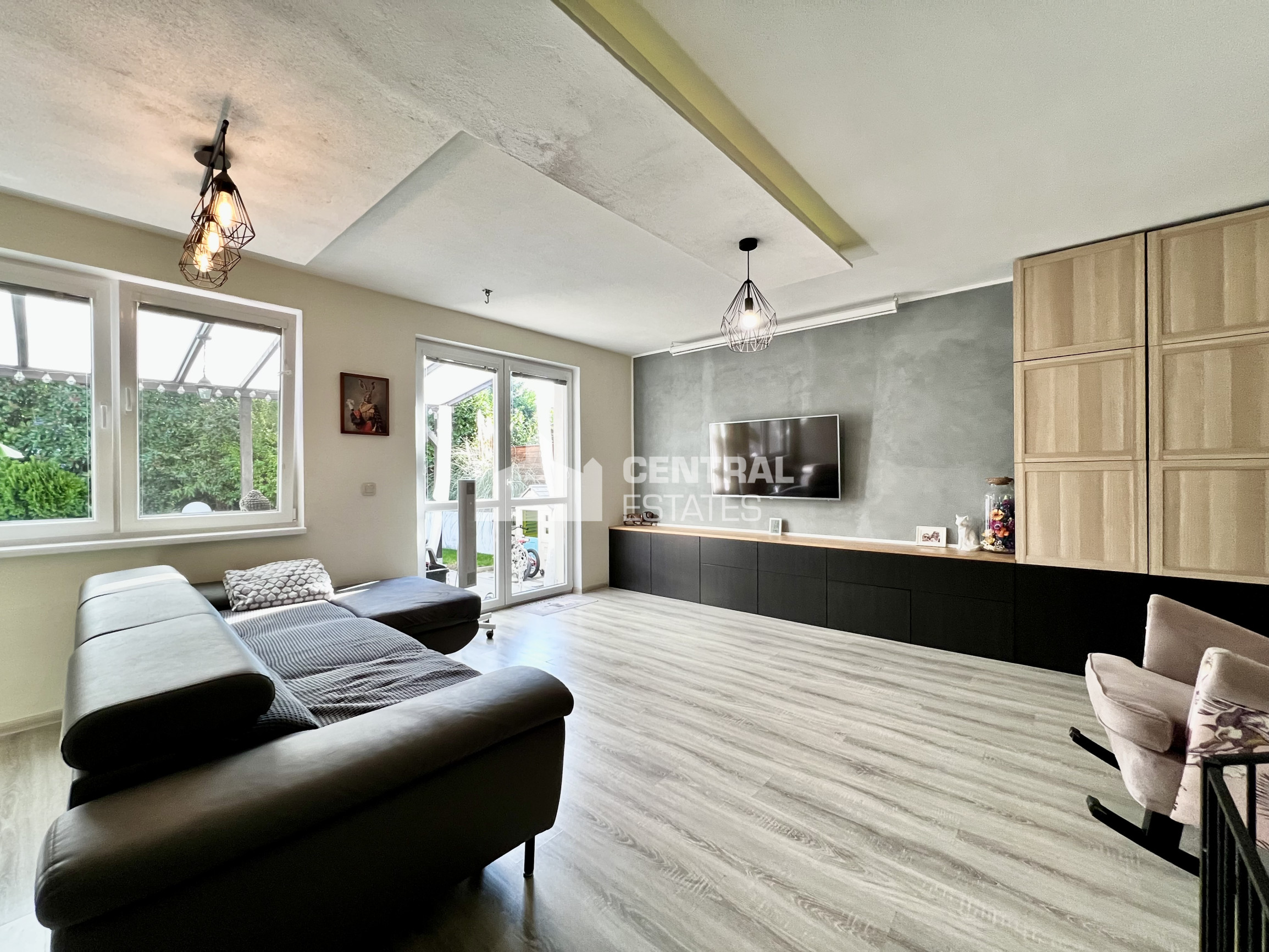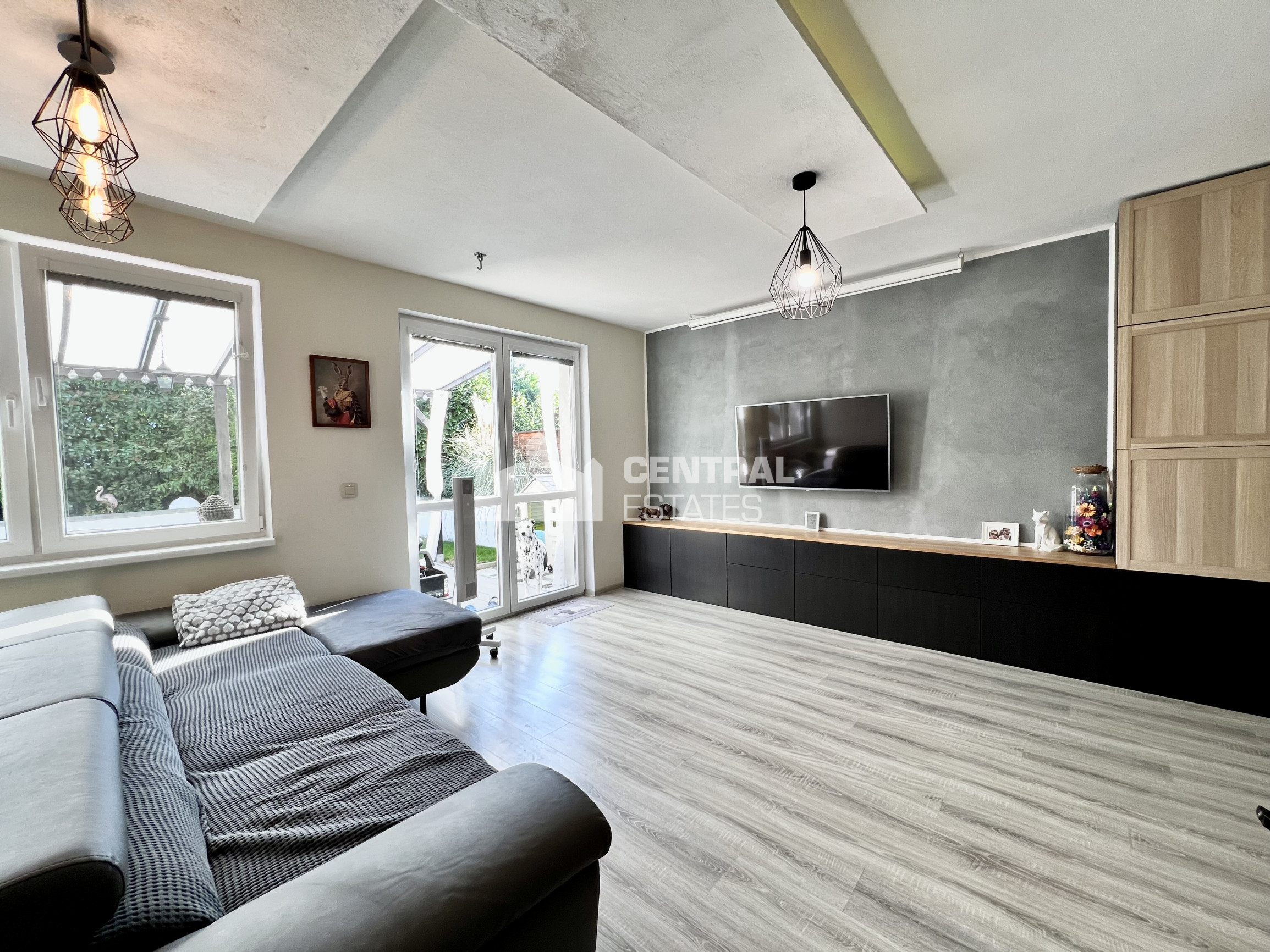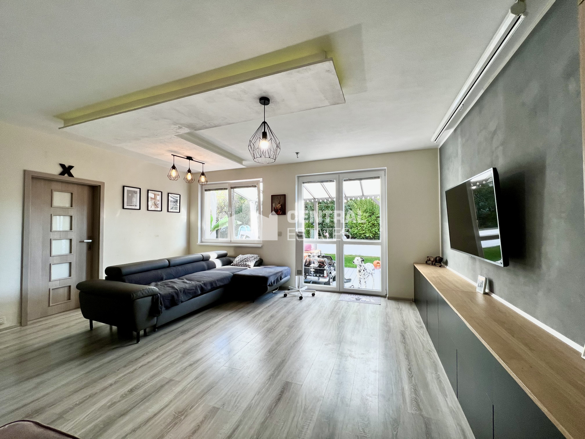 CENTRAL ESTATES/ Moderný 3- izbový byt na predaj v Rovinke na Narcisovej ulici je situovaný v rodinnom dome s tromi bytovými jednotkami. Tento priestranný prízemný 3- izbový byt v sebe spája výhody domu a pohodlie bytu. Úžitková plocha bytu je 77 m², je moderne riešený, presvetlený a pripravený na okamžité nasťahovanie.