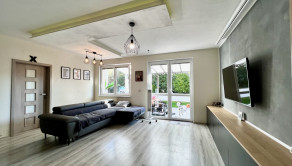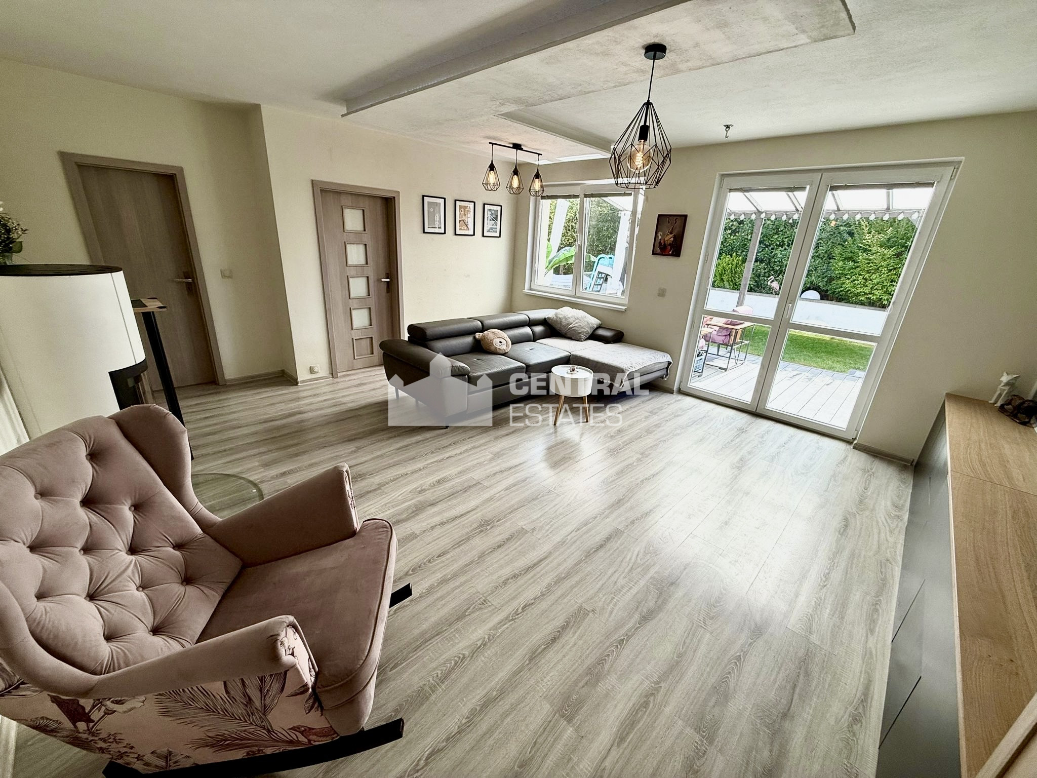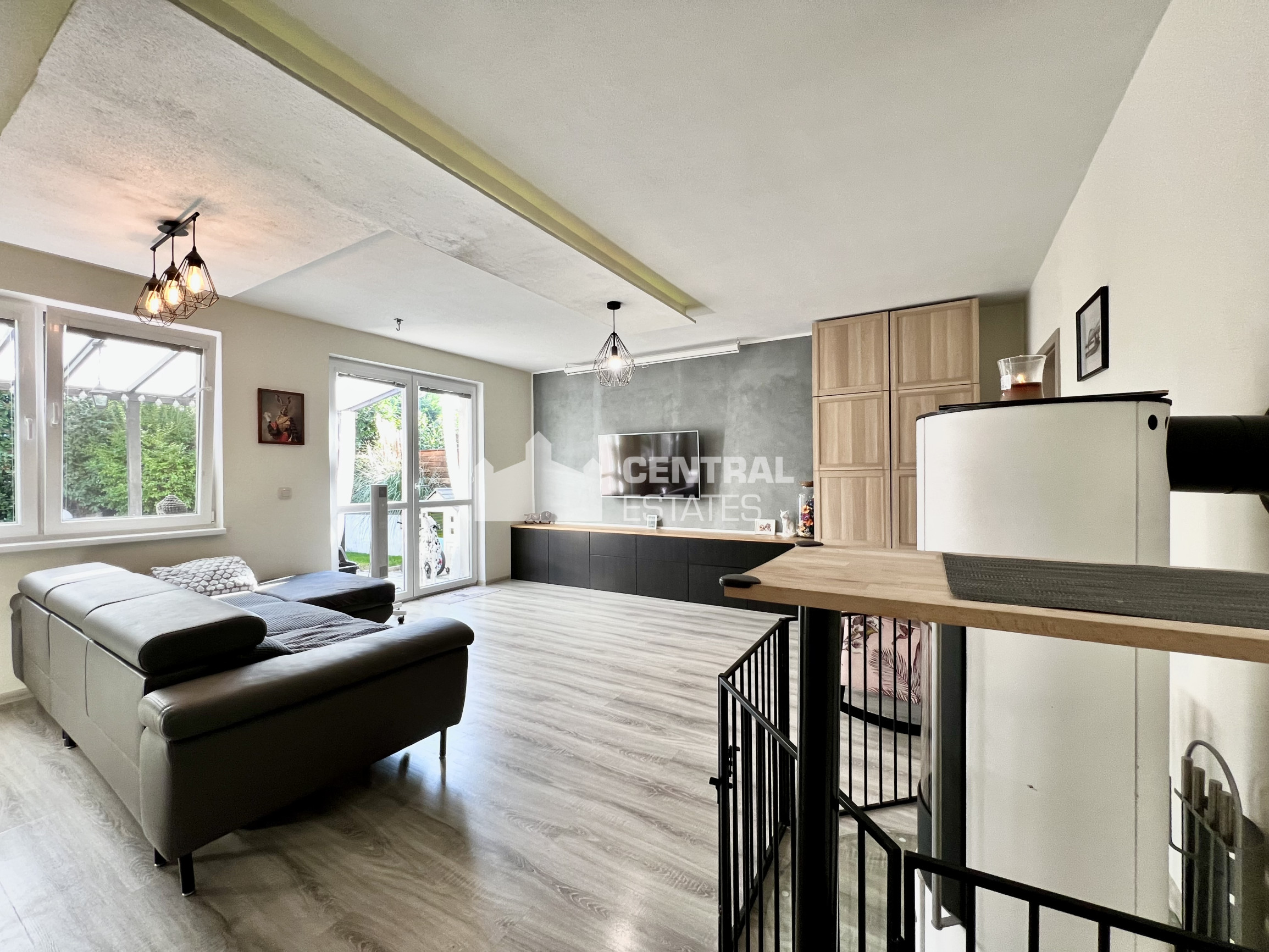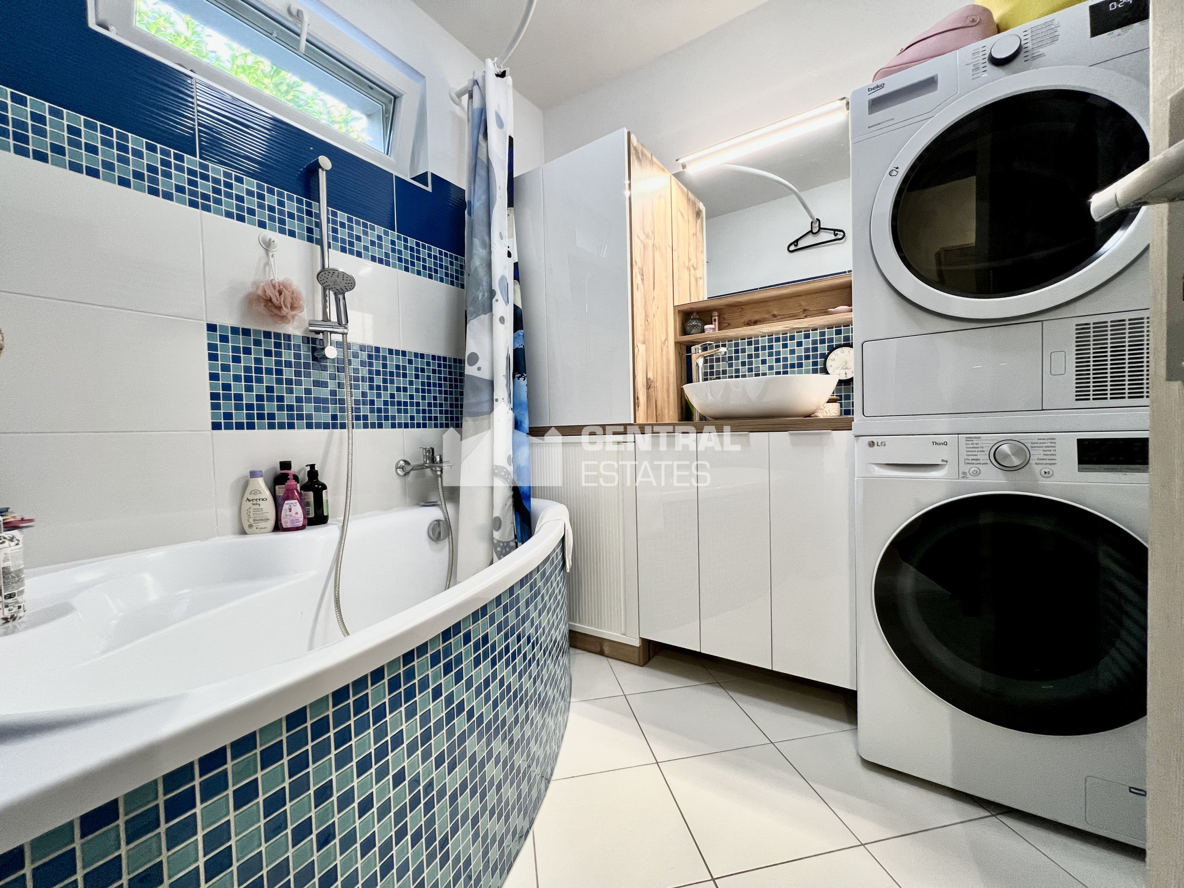 CENTRAL ESTATES/ Moderný 3- izbový byt na predaj v Rovinke na Narcisovej ulici je situovaný v rodinnom dome s tromi bytovými jednotkami. Tento priestranný prízemný 3- izbový byt v sebe spája výhody domu a pohodlie bytu. Úžitková plocha bytu je 77 m², je moderne riešený, presvetlený a pripravený na okamžité nasťahovanie.