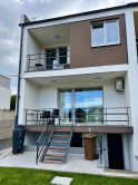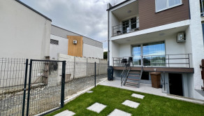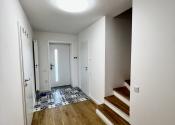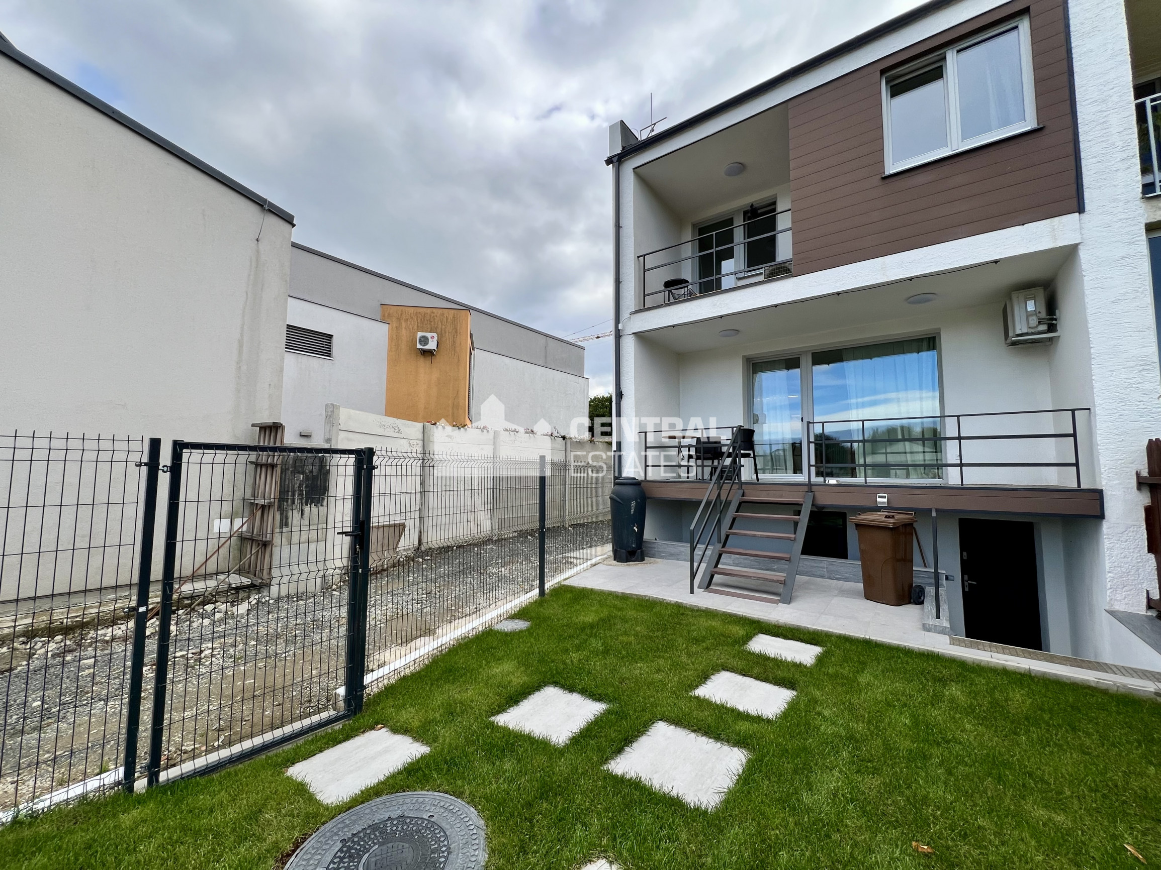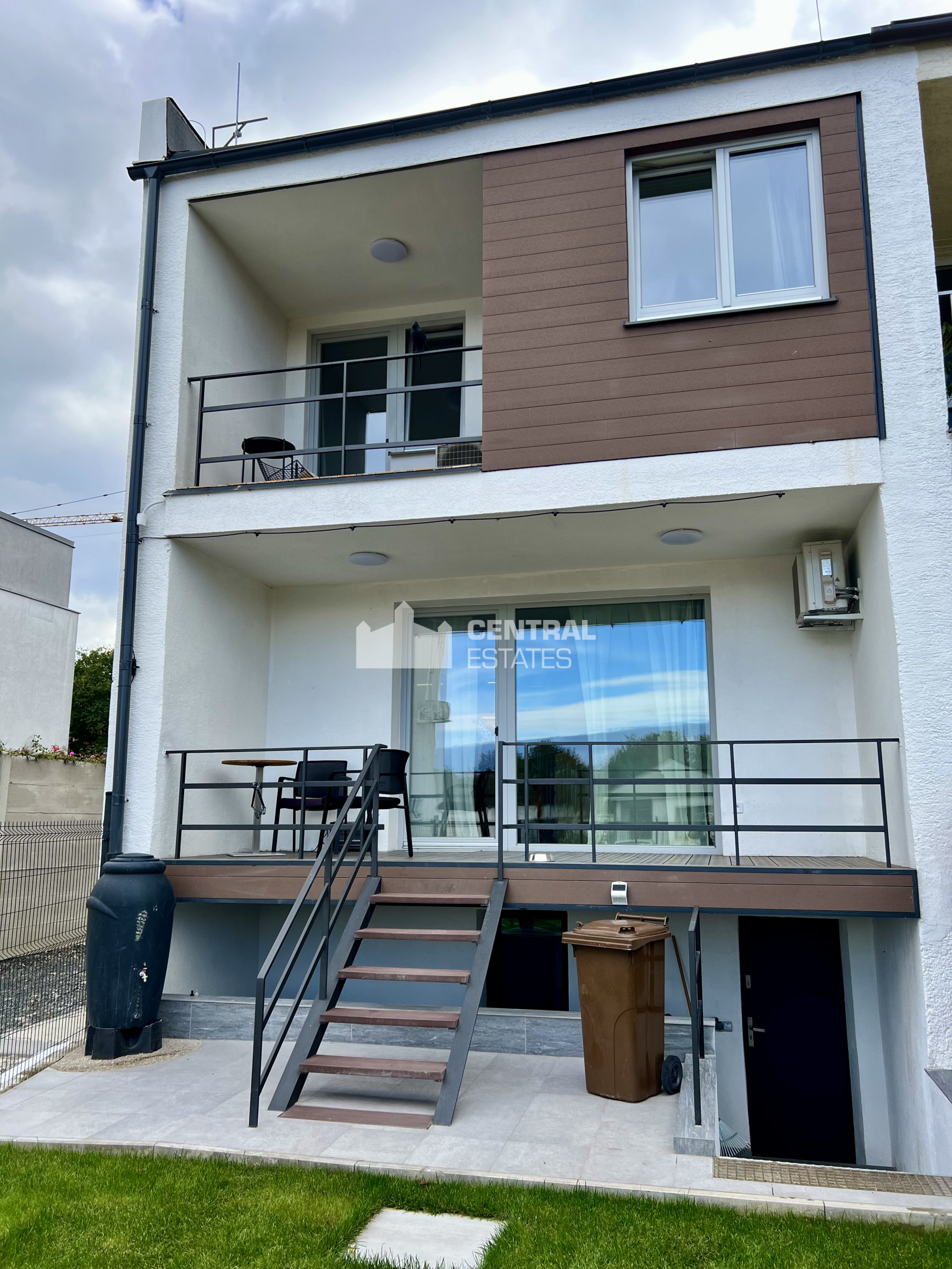 Dom je časťou dvojdomu, s vlastným vstupom na pozemok ako aj do domu. Pozostáva z: na prízemí sa nachádza vstupná chodba, obývacia izba pre pojená s kompletne vybavenou kuchyňou a jedálenskou časťou, pracovňa, kúpeľňa so sprchovacím kútom a toaletou. Z obývacej izby je výstup na terasu, z ktorej je vstup na záhradu. Na poschodí sa nachádzajú tri samostatné izby, kúpeľňa s vaňou a toaletou a vstup na lodžiu. Celý dom je podpivničený, v pivnici sa nachádza technická miestnosť, sklad, (tepelné čerpadlo, poistky, bojler) samostatné wc a dostatok priestoru pre zriadenie druhej kuchyne, alebo oddychovej zóny. Z pivnice sa dá vyjsť tiež na záhradku. Záhradka je menšia ale útulná, oplotená, s grilom, výsadbou, studňou, automatickým zavlažovacím systémom.