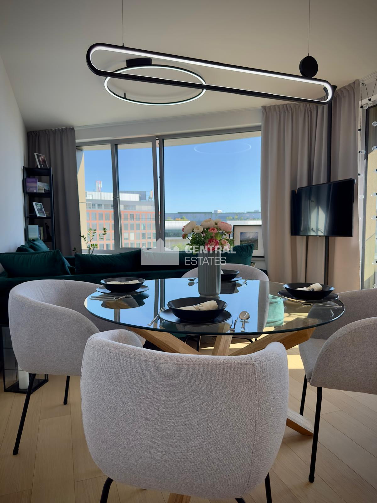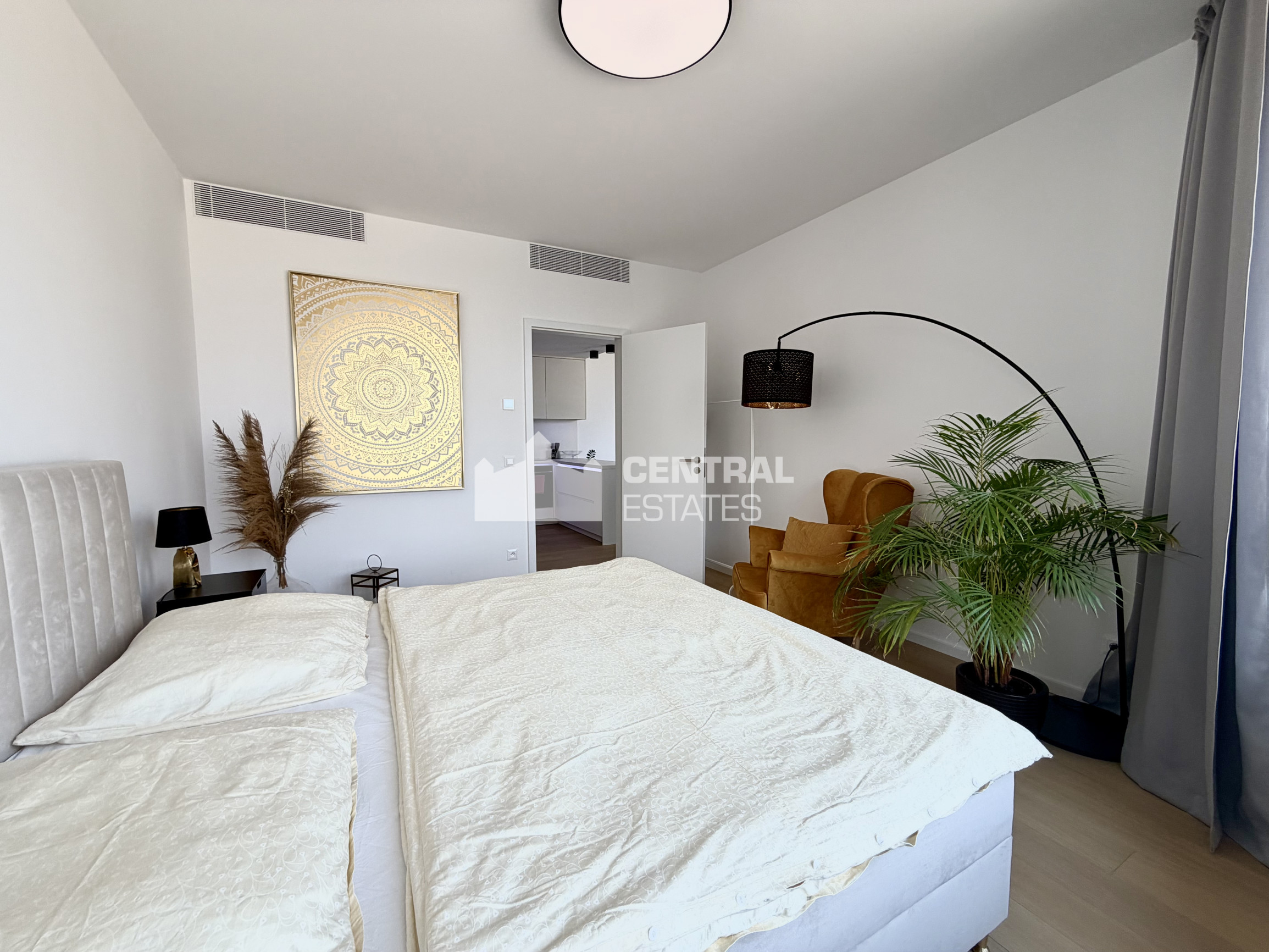 CENTRAL ESTATES/ Vám ponúka na prenájom štýlový a moderne zariadený 3- izbový byt v ikonickom rezidenčnom projekte Sky Park veža 4 na Bottovej ulici.