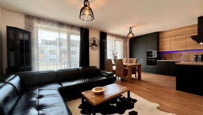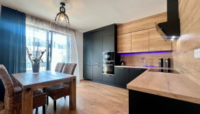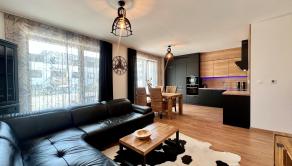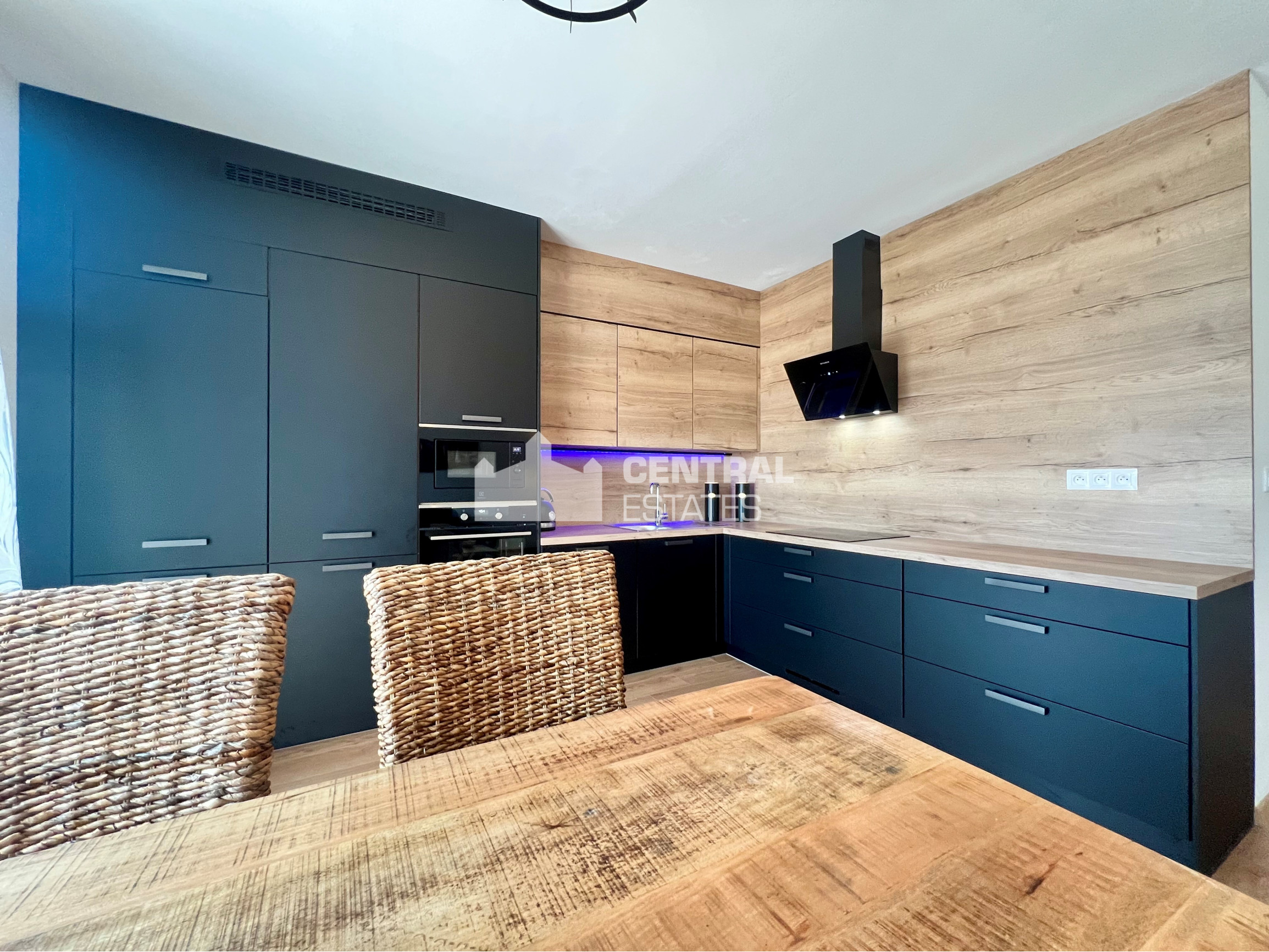 Byt je kompletne a nadštandardne zariadený kvalitným masívnym nábytkom, presvetlený veľkými hliníkovými francúzskymi oknami, elektrickými vonkajšími žalúziami, vybavený kvalitnou klimatizáciou v každej miestnosti, disponuje množstvom úložného priestoru, zabudovanými novými kvalitnými spotrebičmi /umývačkou riadu, chladničkou s mrazničkou, indukčnou varnou platňou, mikrovlnnou rúrou, odsávačom pár, elektrickou rúrou/, ako aj práčkou so sušičkou.