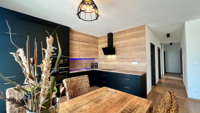 Obe spálne sú vybavené manželskými posteľami, dostatočnými úložnými priestormi, v obývačke je veľká a pohodlná kožená sedacia súprava Natuzzi, veľkoformátový TV a jedálenský stôl s posedením.