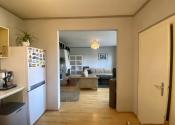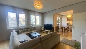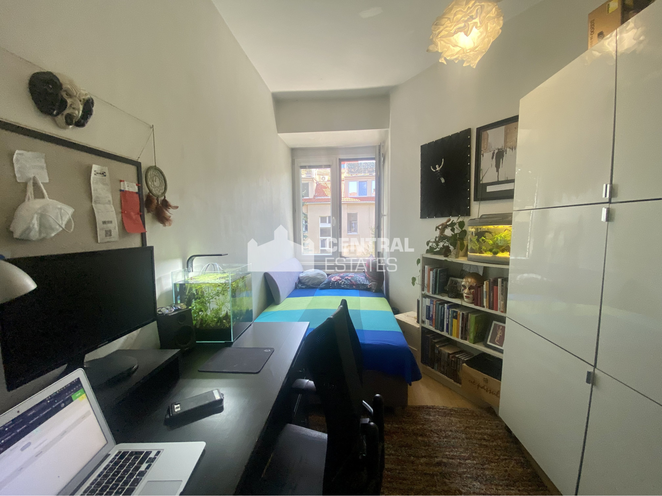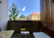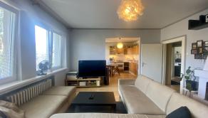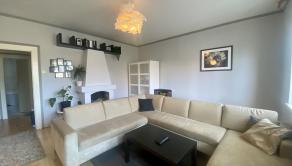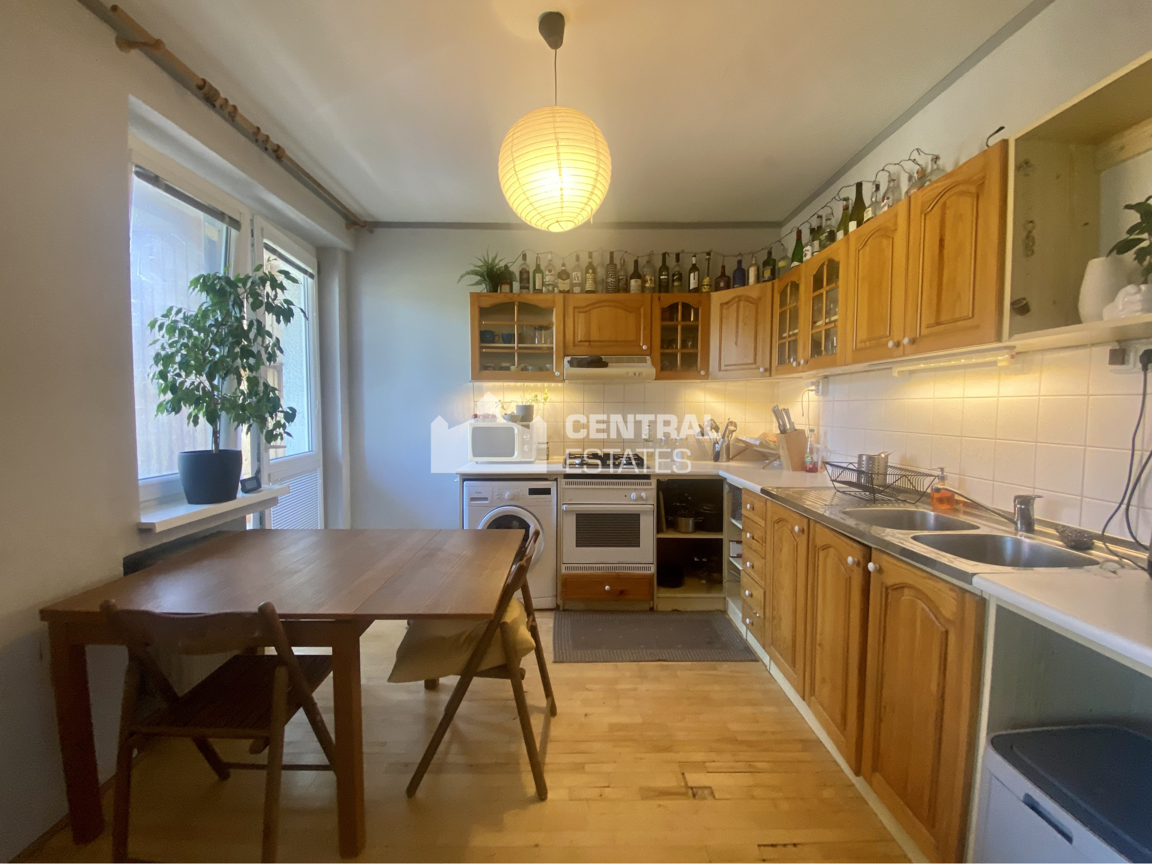 Byt pozostáva zo vstupnej chodby, obývacej izby prepojenej s plne vybavenou kuchyňou a jedálenskou časťou, dvoch samostatných nepriechodných izieb, kúpeľne s vaňou a s toaletou. K bytu prislúcha balkón a murovaná pivnica (3m2) v suteréne. Energie (345 Eur) nie sú zahrnuté v nájme.