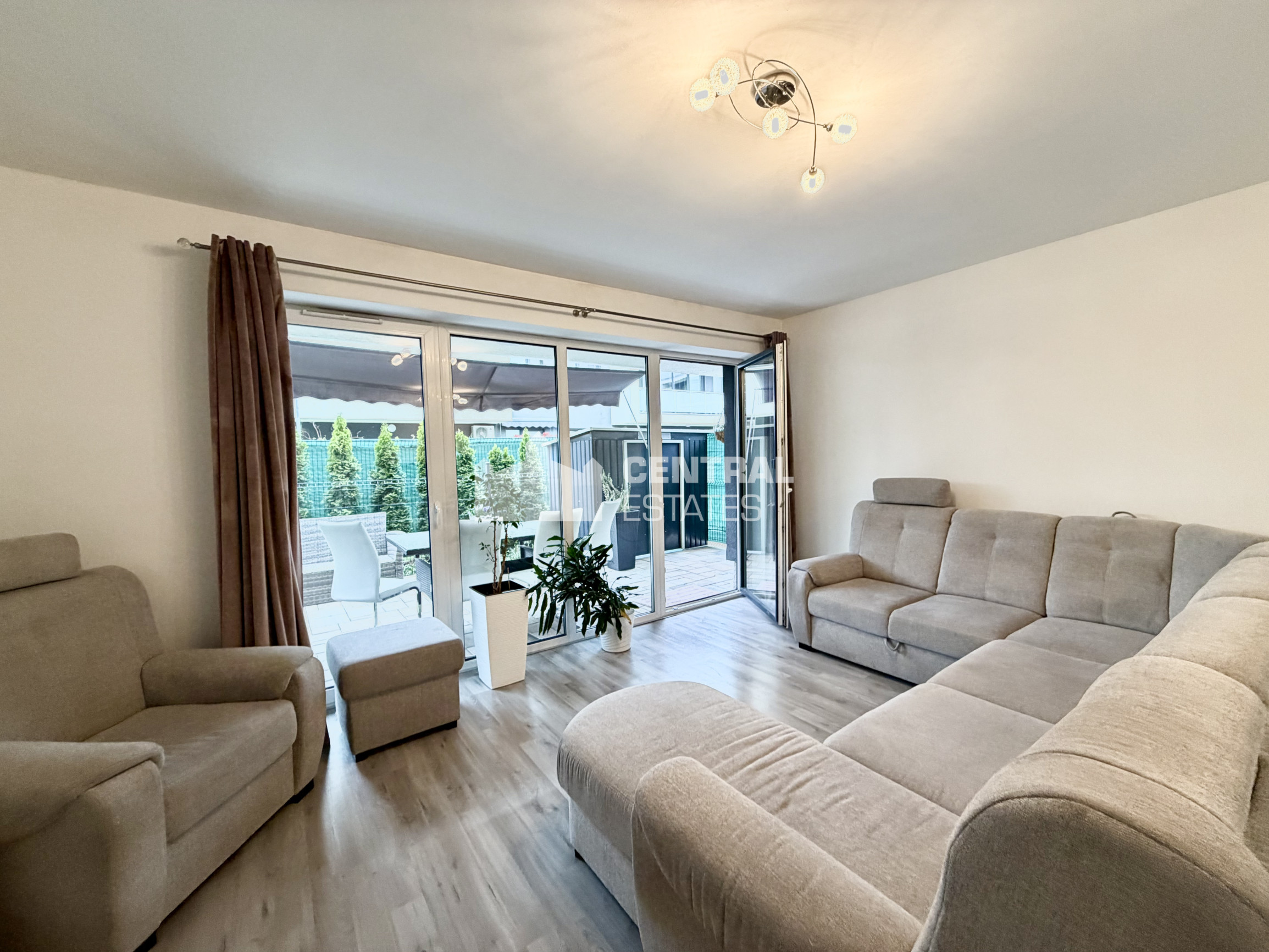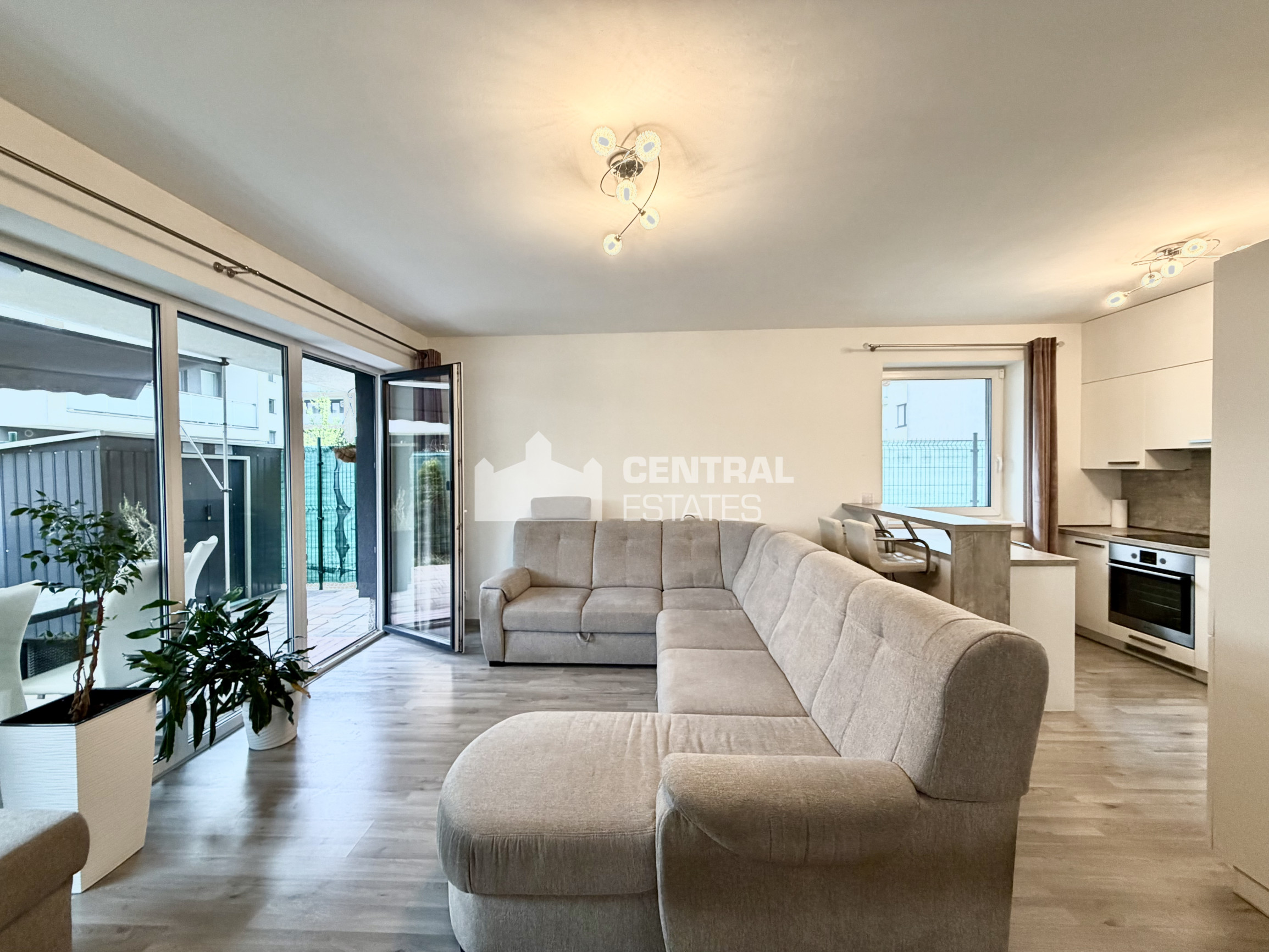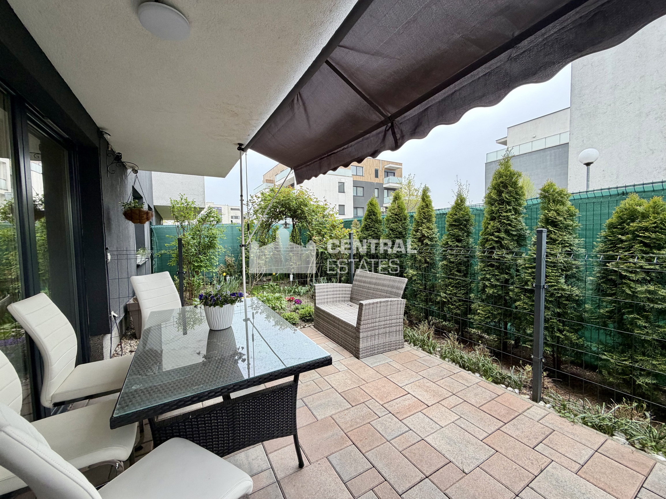 CENTRAL ESTATES/ Priestranný vzdušný 3- izbový byt s predzáhradkou na predaj v obci Dunajská Lužná je situovaný v areáli Green Village na Orechovej ulici.